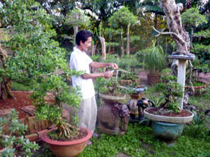 Anh Nhĩ sẵn sàng chia sẻ kinh nghiệm ,cách chăm sóc kiểng của mình cho mọi người - nhất là việc bón phân rất quan trọng cho sự phát triển của cây, không nên dùng phân hóa học mà chỉ bón phân hữu cơ, phân dơi, thêm vào đó là dùng mạt xơ dừa phủ trên gốc giữ độ ẩm mát cho cây. Nghề sửa hoa kiểng của anh không những làm đẹp cho đời mà còn đem lại niềm vui cho mọi người trong việc tạo dáng kiểng giúp nó có giá trị kinh tế cao.