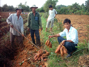 Với 6.000 m2 đất vùng đất cát, anh sản xuất lúa và trồng khoai lang. Mặc dù có đất nhiều, nhưng do ảnh hưởng thiếu nước, đất khô, nên vụ lúa năm nào năng suất cũng đạt không cao, chỉ từ 20 giạ/công, tính trừ ra chi phí thì từ huề đến lỗ. Còn trồng khoai lang, lúc đầu hết sức vất vả, do anh chưa biết gì về kỹ thuật cũng như không chuẩn bị được dây giống, nên "đi từ thất bại này đến thất bại khác", kinh tế gia đình luôn gặp khó khăn thiếu thốn. Thế là anh tìm tòi học hỏi bạn bè, người đi trước về cách chọn dây giống, cách trồng (giâm dây), tưới nước, bón phân liều lượng, đủ dinh dưỡng, giúp dây khoai phát triển cho củ lớn. Đứng trước ruộng khoai đang đào, anh Nghĩa rất vui, vì khoai của anh đạt năng suất bình quân 3,5 tấn/công, tổng thu hoạch hơn 20 tấn. Khoai trúng nên củ lớn nhiều, có củ nặng tới 2kg. Giá thời điểm thương lái cân tại chỗ 3.100 đồng/kg loại 1, còn loại 2 giá 1.500 đồng/kg, tổng thành tiền gần 60 triệu đồng. Anh Nghĩa cho biết thêm: Sau bao năm trồng khoai lang, chỉ có 2 năm trở lại đây là khoai đạt năng suất cao, đó là do anh đã tích lũy được nhiều kinh nghiệm học hỏi - một vốn quý của nghề trồng mà bấy nhiêu năm nay anh cứ ngỡ loại này dễ trồng, hễ đầy đủ nước tưới, phân nhiều là có củ. Anh tự tin: từ nay trở về sau khoai lang của anh sẽ luôn trúng mùa, còn về giá cả thì do "thượng đế" quyết định - anh Nghĩa chia sẻ như vậy.