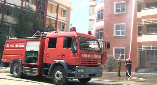 Tình huống giả định là xảy ra cháy tại khu F (lầu 2), nguyên nhân là do sơ xuất trong lúc thực hành thí nghiệm gây cháy. Lực lượng chữa cháy tại chỗ đã đánh kẻng báo động, tiến hành chữa cháy và kịp thời điện thoại 114.