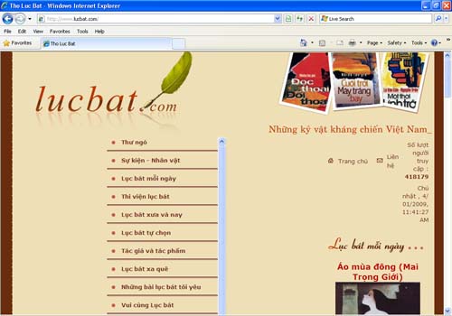 http://www.lucbat.com/ do nhà thơ Đặng Vương Hưng sáng lập, chính thức khai trương từ ngày 6-8-2008. Trong lời ngỏ, BBT trang web viết: "Với mong muốn góp phần tạo dựng một "nhịp cầu văn hóa", để kết nối giữa truyền thống với hiện đại và giữa quá khứ với tương tai, những người thực hiện website này đã và đang âm thầm góp nhặt, sưu tập, sàng lọc và xây dựng... hi vọng tạo nên một "sân chơi nhỏ" cho những người yêu thơ Lục Bát thời @".