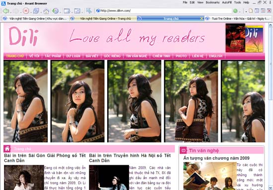 Website cá nhân của DiLi tại địa chỉ www.dilivn.com ngoài việc đăng tải các tác phẩm của DiLi còn có các mục như: Dư luận, Góc riêng, Chiêm tinh, Photo, Tin văn nghệ,... Đây cũng là nơi giao lưu, gặp gỡ với những độc giả quan tâm đến cô.