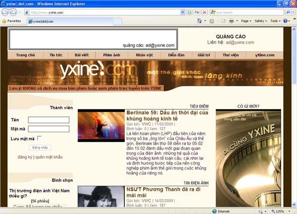 http://www.yxine.com/, một trong những trang web về điện ảnh bằng tiếng Việt thu hút rất nhiều người "yêu xi-nê". Yxine thường xuyên cập nhật những tin tức, bài viết, hình ảnh liên quan đến điện ảnh. Phần diễn đàn của Yxine hiện có khoảng 17.000 thành viên.