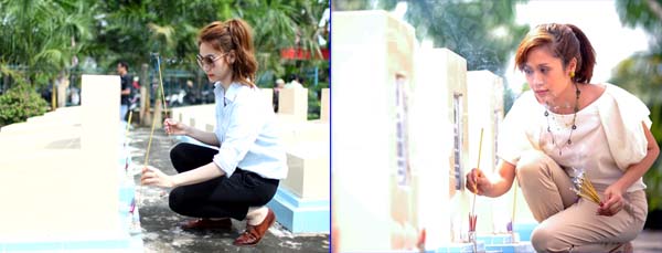 Nghệ sĩ Ngân Khánh và Thanh Thúy thành kính thắp nhang, tưởng nhớ công ơn các liệt sĩ