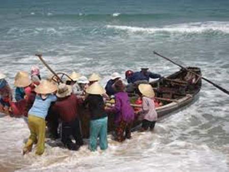 Người dân ở vùng này đã mượn hai loài chim chuyên săn bắt cá, để chỉ nhóm người chuyên mò ốc gạo làm kế sinh nhai. Nếu là đàn bà và trẻ nhỏ chỉ có thể trầm mình mò ốc gạo ở gần mé bờ khoảng 10 đến 30m và độ sâu không quá một mét nước thì được gọi là điêng điểng. Còn đàn ông đi đãi ở ngoài khơi xa có khi hàng trăm mét cách mép bờ, họ được mệnh danh là "cồng cộc" vì khi đãi ốc ở ngoài khơi như vậy, người ta phải đeo vào cổ một túi đãi bằng lưới nhặt mắt, họ dùng một cây sào bằng tầm vông, cắm sâu xuống 6 đến 7 sãi nước, rồi lấy hơi mà lần tay theo cây sào, đến lúc tiếp đất thì dùng hai tay cào lẫn ốc gạo và đất vào túi đãi, có người dài hơn họ lặn lâu đến một đôi phút dưới nước, người ngồi trên xuồng nhìn xuống đã muốn ngộp thay mà họ vẫn chưa trừng lên. Để trừng lên được nhanh và không bị trôi, cũng như không bị túi đãi đầy ốc và đất trì xuống, họ phải nhờ vào cây sào ấy mà lên mặt nước an toàn. Sau khi thở phào nhẹ nhõm, họ mới nhào bóp túi đãi cho trôi đất ra, đến khi chỉ còn có ốc, thì mới đổ lên xuồng và tiếp tục làm lại từ đầu. Cứ như vậy, họ mài miệt và cật lực vật lộn với nước để đãi ốc; ở những anh chàng "Cồng cộc" ấy, mỗi lần đãi về có khi trúng cũng được 5, 7 giạ, còn thất cũng chừng đôi ba giạ, vẫn còn khá hơn nhiều so với "điêng điểng" nếu "trúng lắm" mới được đôi táo, một giạ… (1 táo bằng 1/2 giạ 20 lít). Bởi vậy, nên có ca dao: "Cồng cộc bắt cá trên sông, mấy đời cháu ngoại giỗ ông bao giờ".