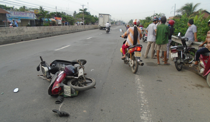 Theo nhiều người chứng kiến tại hiện trường cho biết, vào thời điểm trên xe mô tô BKS 63X1-2618 từ đường hẻm băng ra Quốc lộ 1A, cùng lúc xe mô tô biển số 63H1-7380 trờ tới, do không tránh kịp nên xảy ra va chạm, làm người điều khiển mô tô BKS 63X1-2618 té ngã xuống đường bị chấn thương.