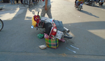 Hậu quả, chị Hiền và cháu Cao Huỳnh Ngọc Hân (4 tuổi) bị trầy xước nhẹ, riêng cháu Cao Huỳnh Ngọc Điệp (16 tháng tuổi) bị vết thương vùng đầu, được chuyển tiếp đến Bệnh viện Đa khoa Trung tâm tỉnh điều trị.