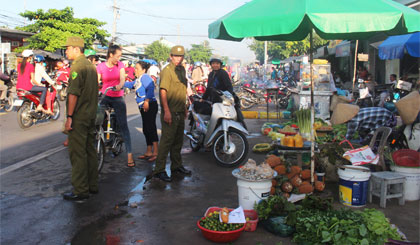 Vừa qua, Công an xã Tân Mỹ Chánh, TP. Mỹ Tho chia thành nhiều nhóm ra quân giải tỏa những người mua bán, dựng xe lấn chiếm lòng, lề đường (QL 50, từ cống Nam Vang giáp ranh phường 9, TP. Mỹ Tho đến cổng chào phía Đông giáp ranh xã Song Bình, huyện Chợ Gạo) dài khoảng 2 km.