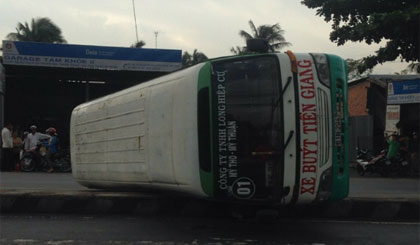 Theo một người dân chứng kiến vụ tai nạn cho biết, vào thời điểm trên xe buýt BKS 61N-2947 (chưa rõ danh tính tài xế) của Công ty TNHH Long Hiệp Cư lưu thông theo hướng Trung Lương về Mỹ Thuận đang chở hành khách trên xe, do tránh một xe tải phía trước nên va vào dải phân cách thấp sau đó lật nhào nằm chắn ngang đường.