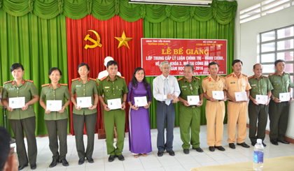 Sáng 18-11, Ban Giám hiệu Trường Chính trị tỉnh phối hợp với Ban Giám đốc Công an tỉnh tổ chức Lễ bế giảng Lớp Trung cấp lý luận chính trị - hành chính hệ vừa làm vừa học khóa III, năm học 2015 - 2016, cho 77 học viên là cán bộ chỉ huy cấp đội, cán bộ quy hoạch thuộc các đơn vị của lực lượng Công an tỉnh.
