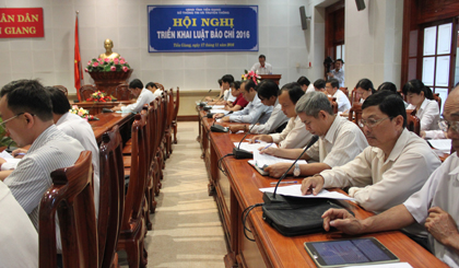 Ông Nguyễn Thanh Hiền- TUV- Phó Trưởng Ban thường trực, Ban Tuyên giáo Tỉnh ủy đã báo cáo khái quát và nhấn mạnh những điểm chính của Luật , đồng thời đi sâu phân tích về những nét mới của Luật báo chí 2016. Theo đó, Luật Báo chí gồm 6 chương với 61 điều (tăng 25 điều), trong đó có 32 điều xây dựng mới, 29 điều sửa đổi, bổ sung. Luật Báo chí còn bổ sung, luật hóa những quy định bắt buộc về đạo đức nghề nghiệp của người làm báo; khẳng định quyền tự do ngôn luận, tự do báo chí của người dân, đảm bảo quyền tiếp nhận thông tin và quyền được thông tin của xã hội. Luật cũng quy định rõ, cụ thể những điều báo chí không được làm; quy định trách nhiệm cung cấp thông tin cho báo chí, việc cải chính trên báo chí;…