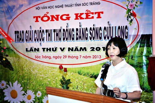Sáng nay (29/7/2013) tại TP Sóc Trăng, Hội Văn học Nghệ thuật Sóc Trăng tổ chức trao giải cuộc thi thơ ĐBSCL lần V năm 2013. Đến dự có ông Quách Việt Tùng - Phó Chủ tịch Ủy ban nhân dân, ông Lam Phương - Phó Trưởng Ban Tuyên giáo tỉnh Sóc Trăng cùng đại diện lãnh đạo các Hội Văn học Nghệ thuật 13 tỉnh thành ĐBSCL và các tác giả tham dự.