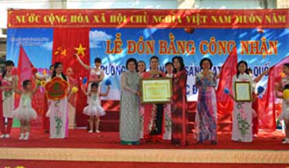 Trường Mầm non Sao Sáng là trường đầu tiên của tỉnh (thuộc bậc học Mầm non) đạt chuẩn Quốc gia mức độ 2.