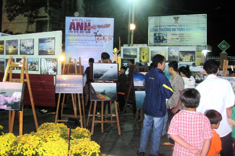 Triển lãm quy tụ hơn 100 bức ảnh với hai chủ đề chính là “Bảo vệ biển đảo quê hương” và “Mỹ Tho nhìn từ trên cao” được trưng bày giữa phố tạo nên nét đặc sắc cho đường hoa tết năm nay.