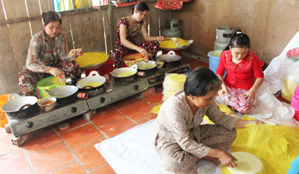 | Cơ sở sản xuất bánh tráng rế của chị Trần Thị Liên, ấp Hậu Vinh, xã Hậu thành đã tạo việc làm thường xuyên cho 16 lao động. |