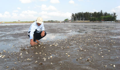 Gò Công Đông: Nghêu chết nhiều làm người nuôi lo lắng