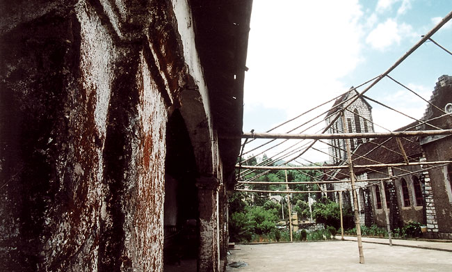 | Bức tường rêu phủ ở nhà thờ Sapa. | |