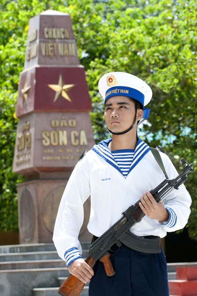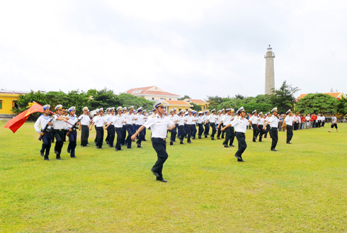 "Chuẩn bị làm lễ chào cờ trên đảo Song Tây Tử".