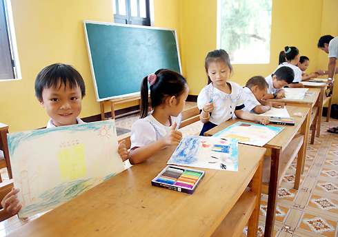 "Giờ học vẽ tại một lớp học trên đảo Song Tây Tử". Sau khi kết thúc triển lãm, nhà báo Hoàng Chí Hùng và Nhà Văn hóa Phụ nữ tặng toàn bố số ảnh cho huyện Đảo Trường Sa. Đây là triển lãm lần thứ ba về biển đảo của tác giả này.