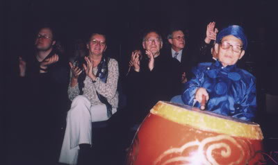 Chấp sự hai tay cầm 2 dìu trống chấp trước ngực, đứng thẳng người nghiêm nghi chờ ban nhạc lễ chấm dứt; bèn “thỉnh thần” ra xem hát. Lúc đó ban nhạc hát bội bắt đầu trỗi lên tiếp bản nhạc lễ.