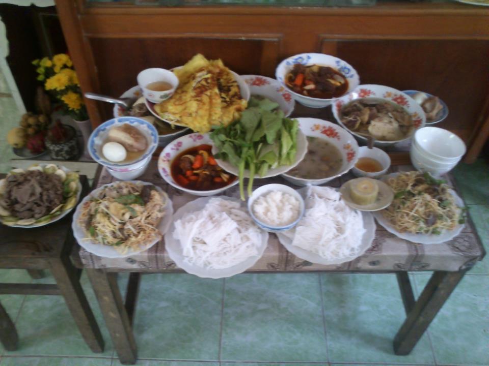 Ngoài món bánh ít là món phải có của đám giỗ miền Tây, những món còn lại thay đổi theo từng nơi. Nhà ngoại tôi thì phải có món bì cuốn, thứ bì cuốn bằng bánh tráng bự như cái mâm, mười cuốn như vậy được cuốn chung lại với nhau, sau đó thì cắt khúc vừa ăn, dọn lên dĩa thật là đẹp. Nhà ngoại cũng hay làm heo quay ăn với banh bao nhỏ chiên, bánh hỏi hoặc xôi. Gà thì thường được nấu cà ri và nấu cháo. Vịt thì đem nướng hay nấu chao. Còn có các món chè nữa, ngoại tôi hay nấu chè đậu trắng. Món ăn đám giỗ thường là những món ngày thường ít nấu, chứ không hẳn là món thiệt là đặc sắc của miền Tây. Cái chính là dịp bà con hàng xóm gặp nhau, ngồi lại dùng chung bữa cơm và hàn huyên đủ chuyện xưa nay. Mấy bà thì vừa gói bánh ít, cuốn bì cuốn vừa nói chuyện giá cả, chuyện con cái, chuyện đi coi mắt con dâu, bàn xem nên ưng đám nào. Mấy ông thì ngồi rề rà rượu đế, nhắc cái thời trai trẻ hồi xưa, bàn chuyện thời sự hôm nay, hỏi han nhau chuyện làm ăn, dự định sắp tới. Đám giỗ còn là dịp bà con trong họ dẫn con dâu con rể, đứa con, đứa cháu mới đi xa về (hoặc chuẩn bị đi xa) đi chào mấy cô mấy bác. Hay chỉ là cái cớ để mấy người xa quê về nhà ở lại nhà tổ lâu lâu một chút, gặp được nhiều người lâu rồi hông gặp, nhắc lại “tuổi thơ ban đầu” với đám bạn già hồi nhỏ.