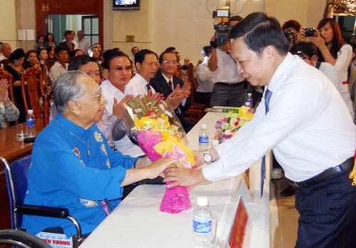 Đồng chí Trần Thế Ngọc - Bí thư Tỉnh ủy trao hoa cho GS-TS. Trần Văn Khê