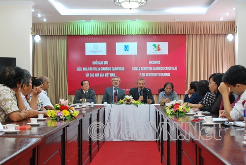 Đại sứ Italia Lorenzo Angeloni đáp lại lòng nhiệt thành đón tiếp và sự quan tâm của Hội NVVN bằng lời cảm ơn chân thành, ông nói thêm: “Công việc chính của tôi trong nhiệm kỳ công tác tại Việt Nam là ngoại giao, nhưng đam mê lớn nhất lại chính là văn chương. Ngoài những tài liệu cần đọc để phục vụ cho công việc, tôi đã tìm đọc những tác phẩm văn học Việt Nam được chuyển ngữ sang tiếng nước ngoài. Hôm nay tôi rất vinh hạnh được có mặt tại Hội NVVN, được trò chuyện với các nhà văn đã và sẽ nổi tiếng của Việt Nam…”