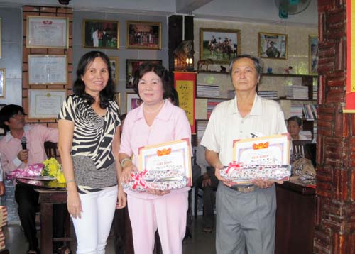 Nhà văn Thu Trang trao bằng khen cho CLB Thơ Trúc (huyện Chợ Gạo)
