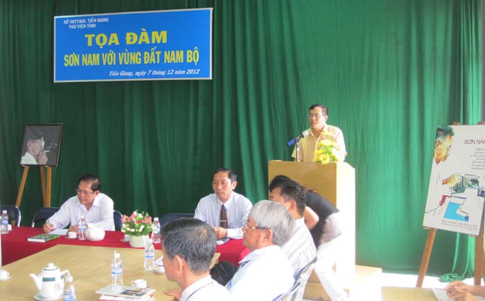 “Sơn Nam với vùng đất Nam bộ” là chủ đề buổi tọa đàm do Thư viện Tiền Giang phối hợp với Trường Đại học Tiền Giang tổ chức sáng ngày 7/12/2012 với mục đích giới thiệu đến độc giả các bài nghiên cứu và tác phẩm của nhà văn Sơn Nam về lịch sự phát triển, văn hóa, tín ngưỡng, con người… của vùng đất Nam bộ.