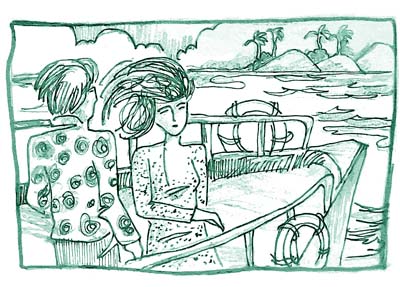 Có lẽ gió ngoài khơi đã lặng nên tàu bớt chòng chành, và cô gái ngồi bên cạnh đã bắt đầu thở đều đều, dường như đã ngủ.