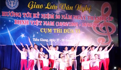 Thiết thực kỷ niệm 20 năm thành lập Bảo hiểm Xã hội Việt Nam, Bảo hiểm Xã hội Tiền Giang vừa đăng cai tổ chức các hoạt động giao lưu văn nghệ - thể thao, thu hút 9 đơn vị thuộc cụm thi đua VI gồm: TP. Hồ Chí Minh và các tỉnh Bến Tre, Bình Dương, Bà Rịa - Vũng Tàu, Đồng Nai, Đồng Tháp, Long An, Tây Ninh và Tiền Giang tham gia.