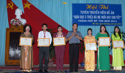Nhằm củng cố nâng cao kiến thức về nội dung của đề án nuôi dạy con tốt và kỹ năng tuyên truyền cho đội ngũ tuyên truyền viên (TTV) cơ sở, ngày 3-10, Ban Chỉ đạo thực hiện Đề án 707 TP. Mỹ Tho tổ chức Hội thi TTV Đề án “Giáo dục 5 triệu bà mẹ nuôi dạy con tốt”, 51 TTV của 17 đội (mỗi đội 3 thành viên phải là phụ nữ, nông dân, đoàn thanh niên) cùng đông đảo cổ động viên 17 phường, xã trong thành phố tham dự.