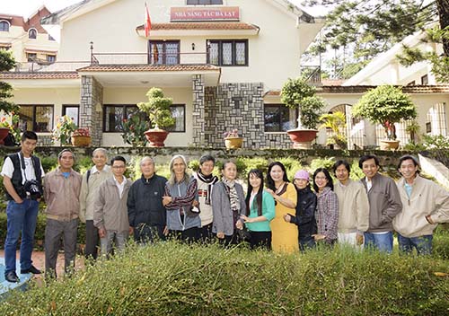 | Đoàn văn nghệ sĩ Tiền Giang trước nhà sáng tác Đà Lạt |