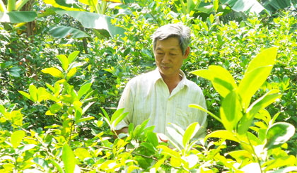 Kinh nghiệm của ông Lòng trong chăm sóc vườn là hạn chế sử dụng phân vô cơ, tận dụng chất mùn để chống bạc màu đất, thiết kế đường ống dẫn nước tưới tiêu hợp lý. SXKD hiệu quả, kinh tế gia đình ông Lòng dần khấm khá với thu nhập mỗi năm 300 triệu đồng.