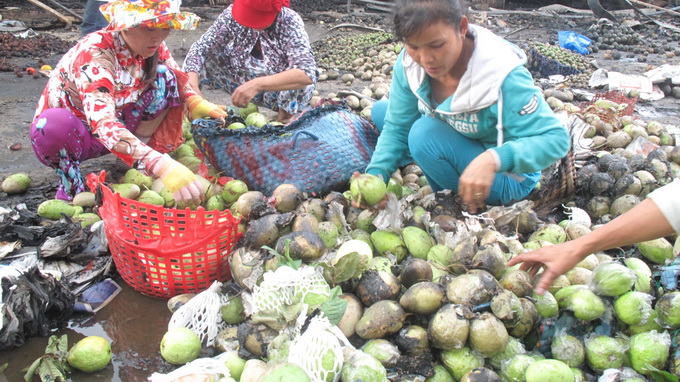 Cám cảnh người dân mót trái cây bị cháy sém - Ảnh: Thanh Tú