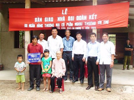 Ngày 30-5, Ngân hàng TMCP Ngoại thương Việt Nam chi nhánh Tiền Giang (Vietcombank Tiền Giang) tổ chức trao tặng nhà đại đoàn kết cho 5 hộ nghèo của xã Long Vĩnh, huyện Gò Công Tây, mỗi căn trị giá 30 triệu đồng.