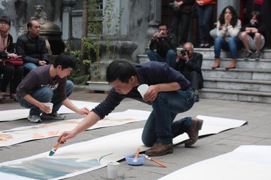 Các họa sĩ nông dân trực họa tại sân đình Kim Ngân (HN)
